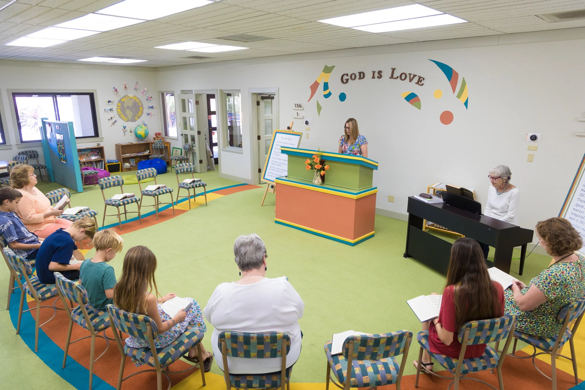 Wednesday night testimony meetings are at 7:30 pm, with brief readings that speak to topics impacting our community. There is also time to participate in an open floor, during which attendees share inspirations and healing experiences through their study of Christian Science. Child care is provided at all weekly services.